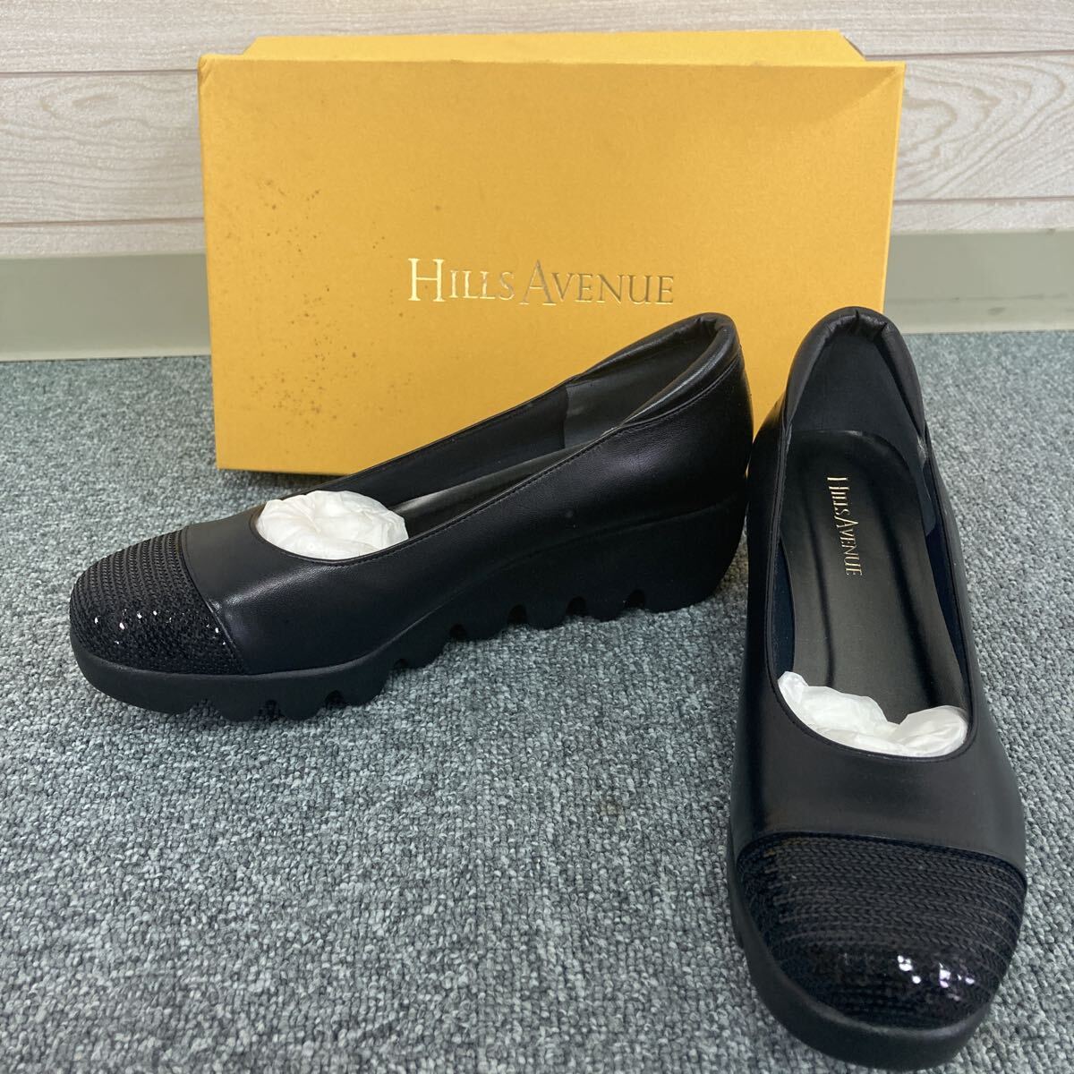 - ヒルズアヴェニュー シューズ ブラック スエード パンプス スパンコール 23.5cm Q-6