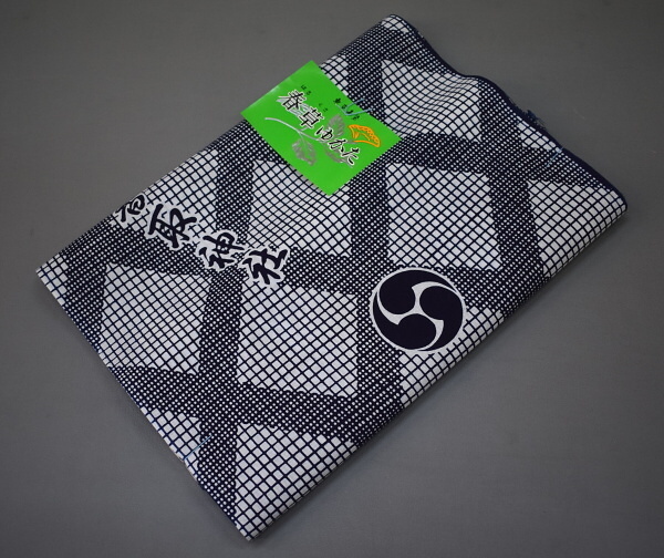 - A01-20【凛々】即決 新古品 本染 ゆかた反物 白 紺 香取神社 未仕立て品