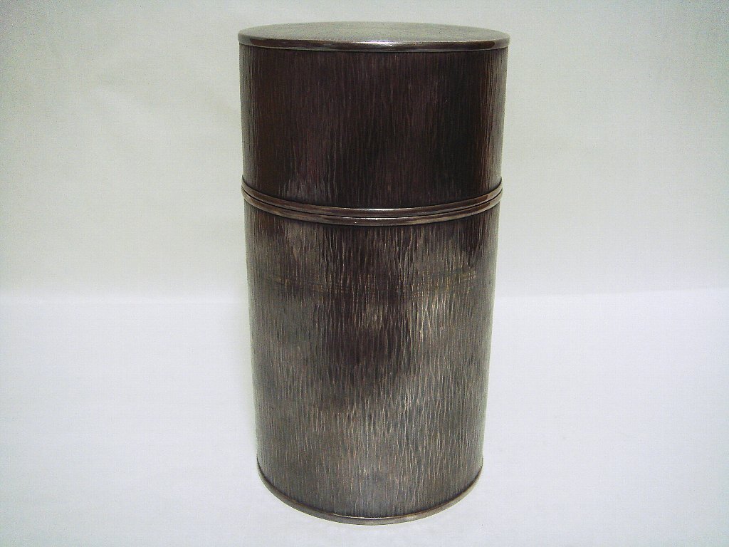 - Y039 純銀製 茶筒 在銘 刻印あり 804g 茶入 茶壺 煎茶道具 煎茶器 緑茶