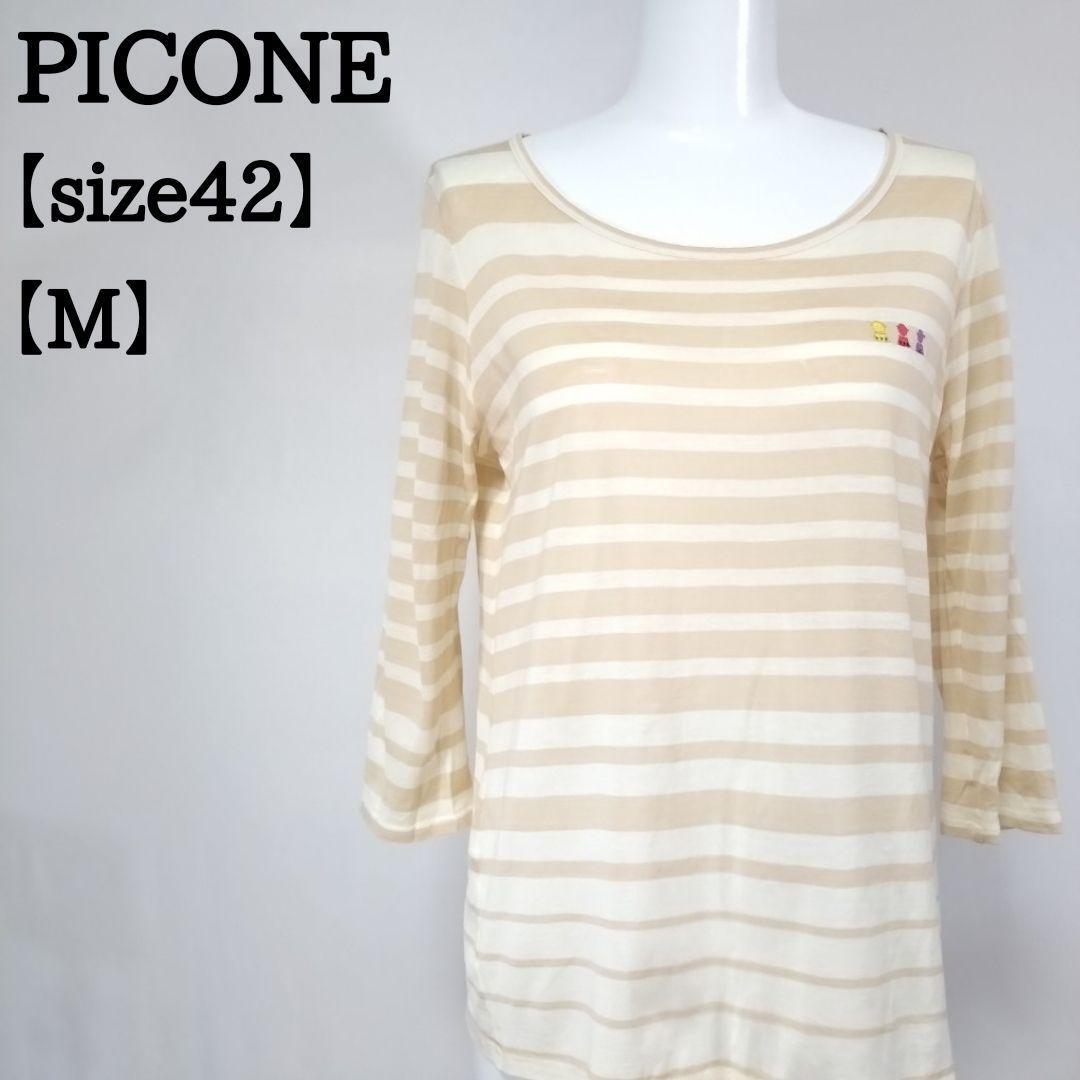 - PICONE ピッコーネ 胸ししゅう Tシャツ ボーダー 長袖 クルーネック 薄手