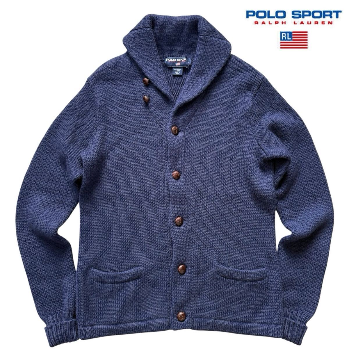 > 90's【ポロスポーツ ラルフローレン】 ローゲージ ショールカラーカーディガン M(小さめなのでSサイズ相当) ネイビー マイケルタピア期