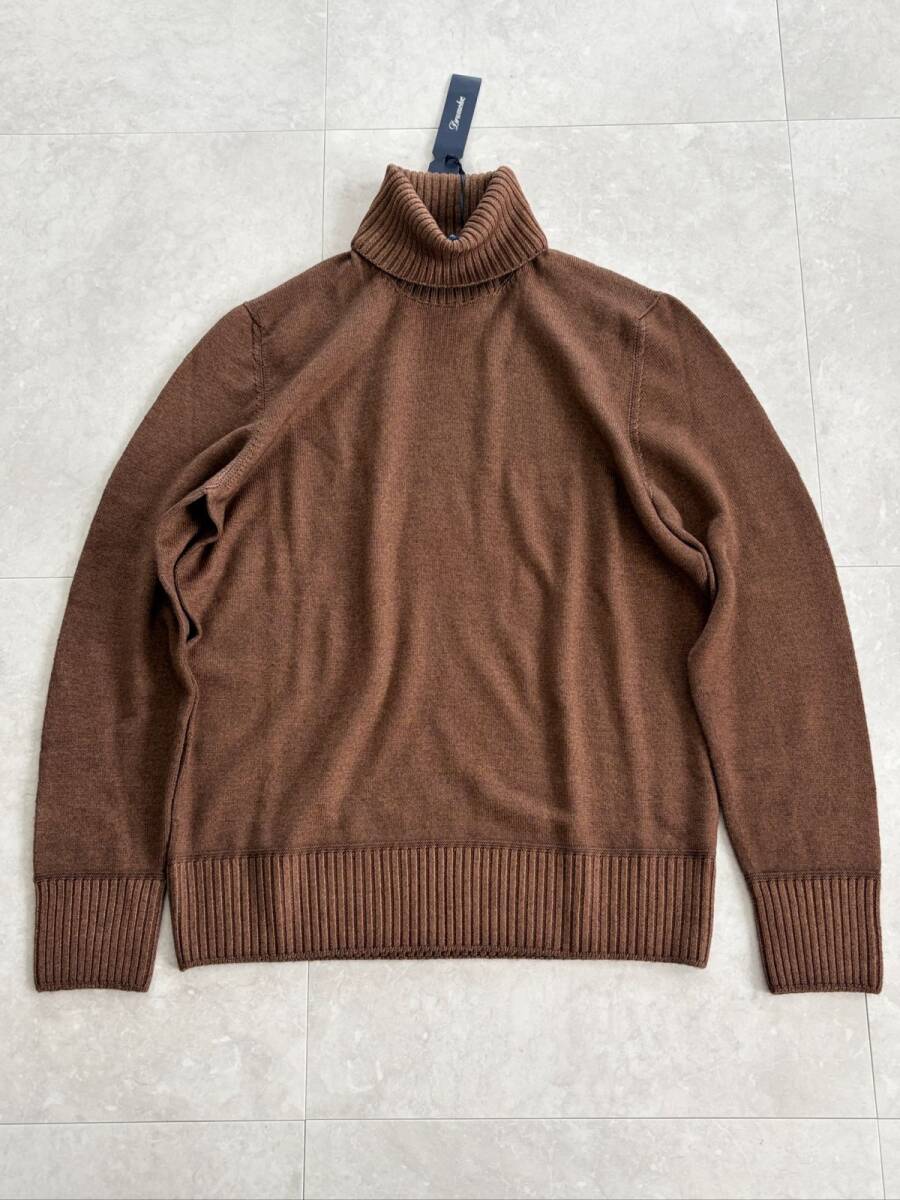 - 6674】新品6.8万【DRUMOHR / ドルモア 50 秋冬 ミドルゲージタートルネックニット 27G×9G切替EXメリノウール 】ウォッシュドブラウン