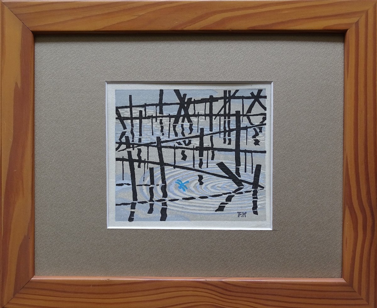 - ・作者: F・K(作者不詳)・画題: トンボと池 ・技法: 木版画 ・NO-R6-4-15.8