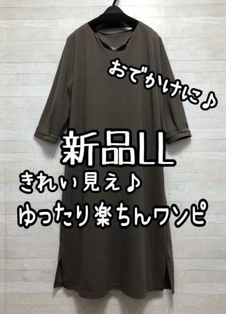 - 新品☆LL♪モカ系♪ストンとゆったりワンピース♪きれいめ楽ちん♪☆Q406