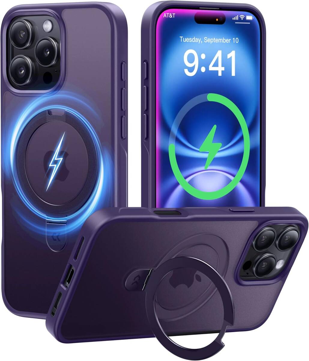 - CASEKOO iPhone 14 Pro 用 ケース 米軍MIL規格 横縦両立 指紋防止 MagSafe対応 ストラップホール付(クリアパープル)