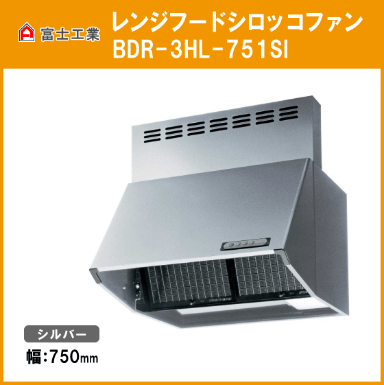 > レンジフード シロッコファン(本体カラー:シルバー) 幅750mm 高さ600mm BDR-3HL-751SI 富士工業 FUJIOH