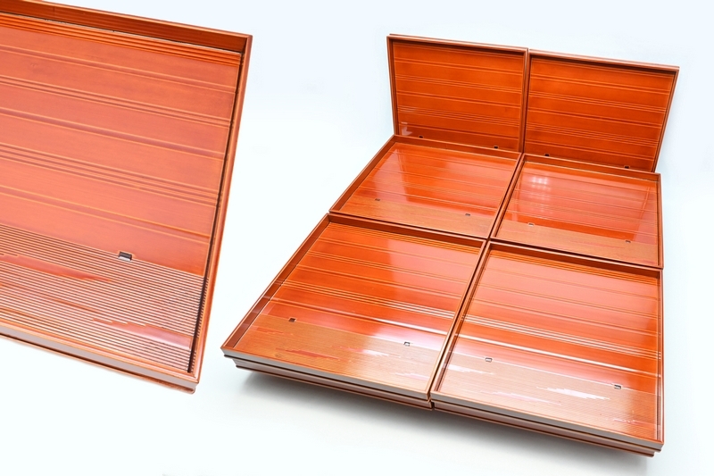 - 春慶塗 懐石膳 ■ 膳 脚付 会席膳 [縦横約35.8×h6.8㎝約] 十客 ■ 天然木 木製 茶道具 煎茶道具 漆器 木箱入り■