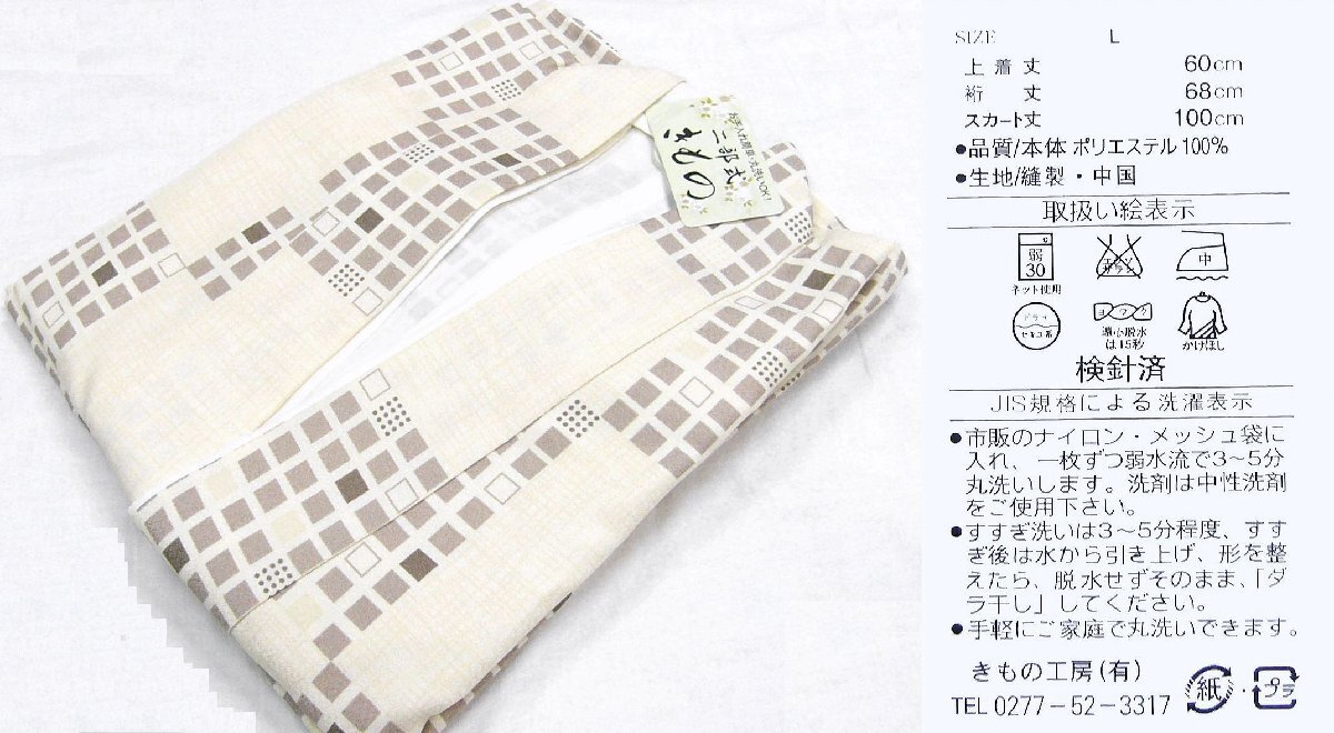 - アウトレット お手入れ簡単・丸洗いOK ポリエステルの2部式着物 201 L 未使用・わけあり品