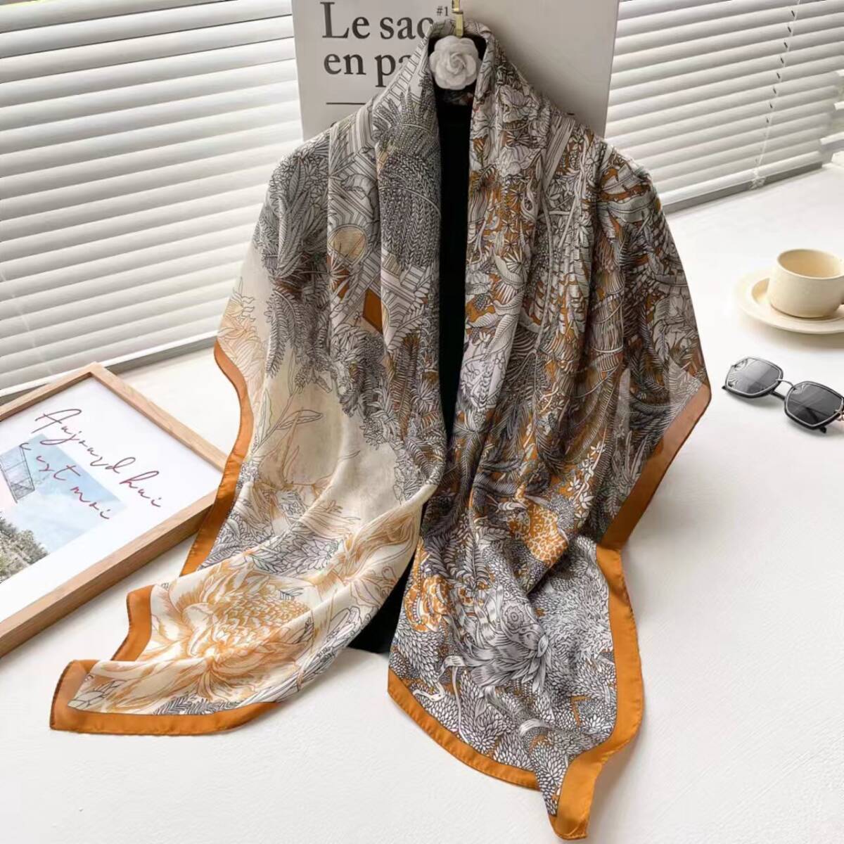 - 【Z-59】新品レディースショール正方形110cm シルク調 ショール 日焼け 冷房対策 ストールスカーフ