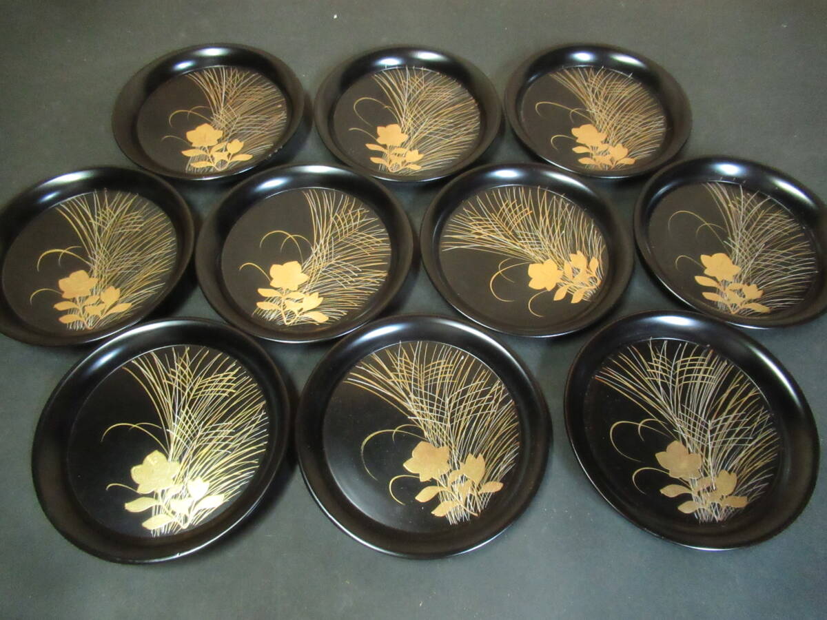 - 【広吉堂】輪島塗 菓子器 木皿 蒔絵 時代物 美品 10枚