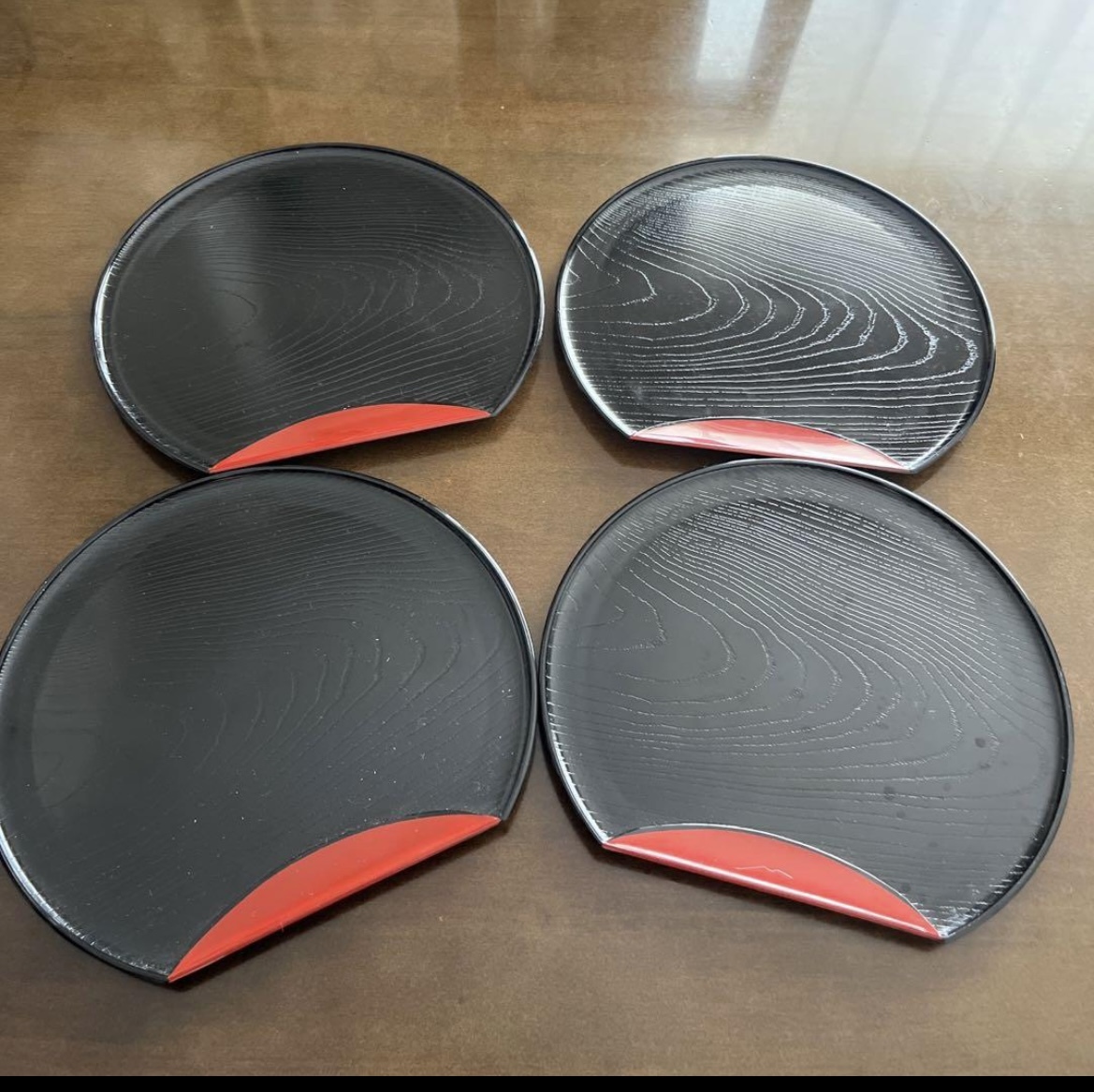- 和風 木目調 半月板 お盆 コースター 茶托