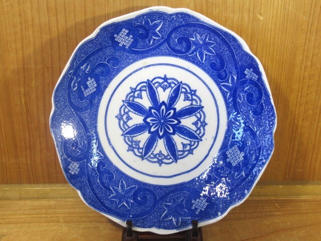 - ◆明治印判8寸皿◆『微塵:流水紅葉:見込み:八芒星』◆図変わり印判◆