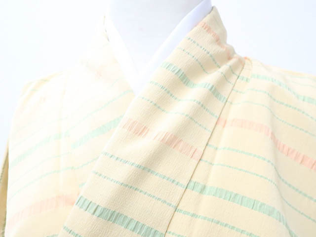 - 《京都一輝堂》リサイクル着物 小紋 ふくれ織 縞 正絹 身丈約161cm 裄丈65cm 25z10-5577