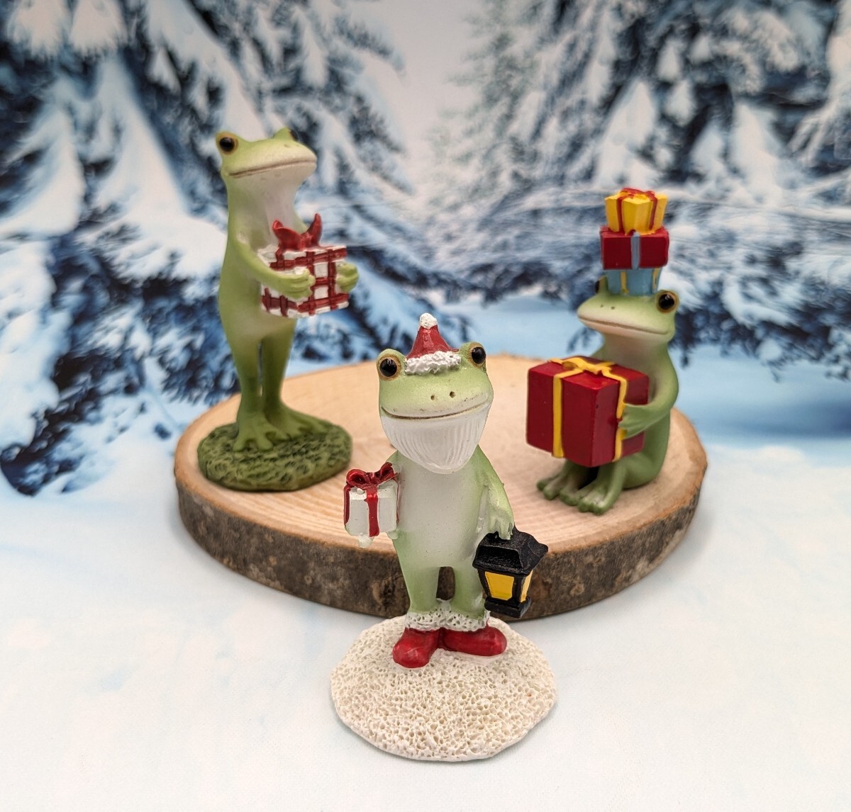 - COPEAU コポー カエルの置物 サンタクロース プレゼントを持つカエル 3種セット
