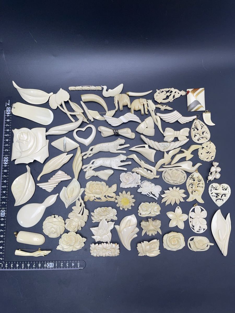 - A7k8 鯨歯風ブローチ 608g ネックレス 飾り品 アクセサリー品 天然素材 東洋彫刻