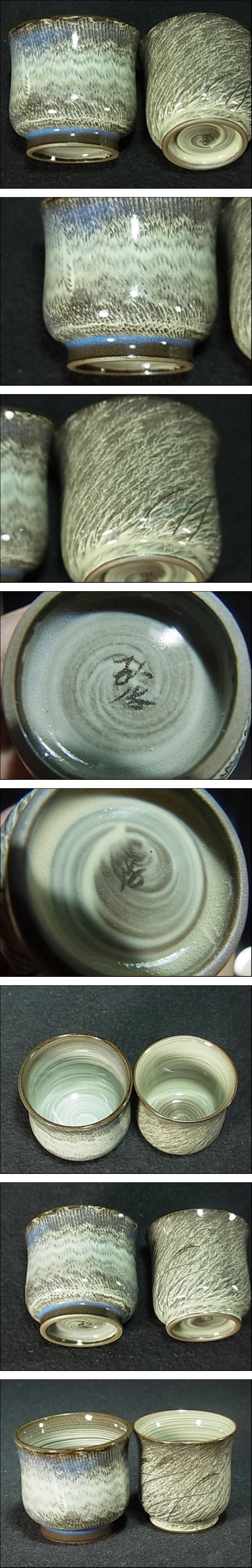 - 現川焼 十三代 横石臥牛 ぐい呑 2客 口径5.5㎝&口径5㎝高5㎝美品良好品
