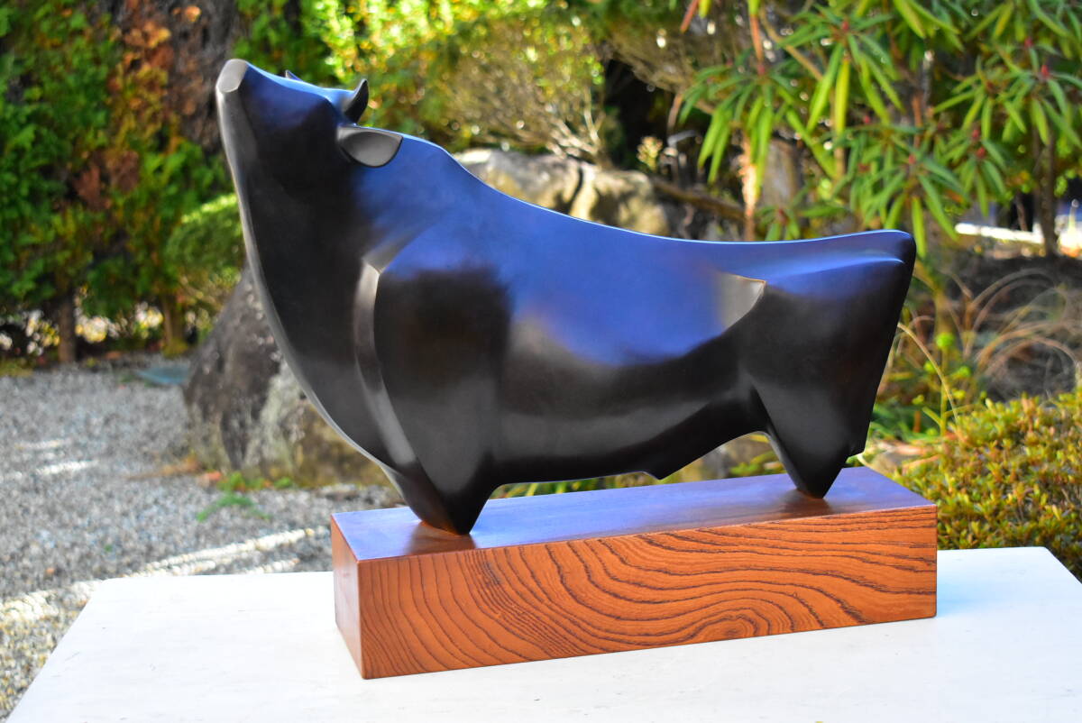 牛 銅製置物 欅台座 鋳銅 唐金 大型 全長54cm 高44cm オブジェ