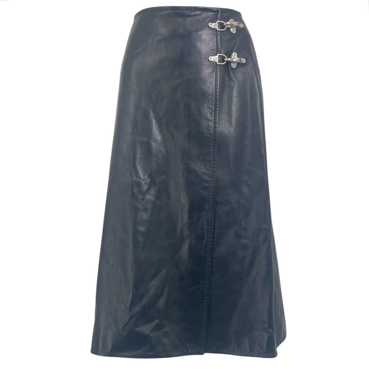 - 極美品 CELINE セリーヌ スカート レザー 金具 ブラック AH3-2 1002-14