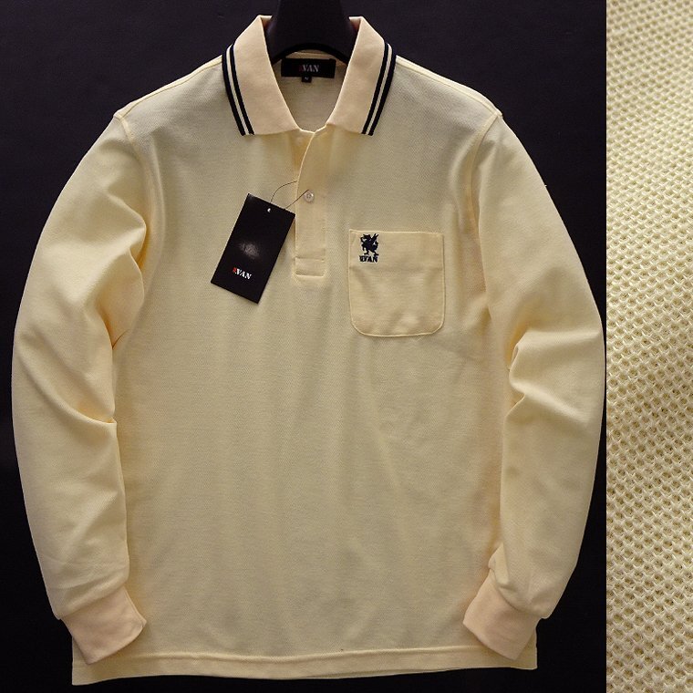 - 新品 ミスターヴァン 24年春夏 長袖 ライン ポロシャツ M 黄【VA1941046_46_M】 MR.VAN 鹿の子 カノコ シャツ メンズ トップス スポーツ