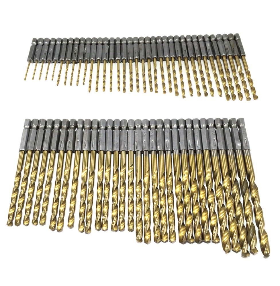 - 六角軸 ドリルビット 13種 65本セット 鉄鋼用 チタンコーティング 穴あけ 加工 作業 工事