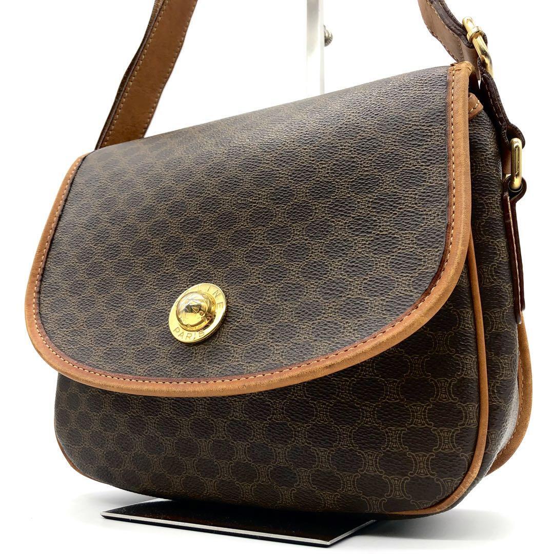 > 【希少デザイン】CELINE セリーヌ ショルダーバッグ ポーチ ポシェット スターボール マカダム柄 総柄 ブラゾン 肩掛け 斜め掛け ブラウン
