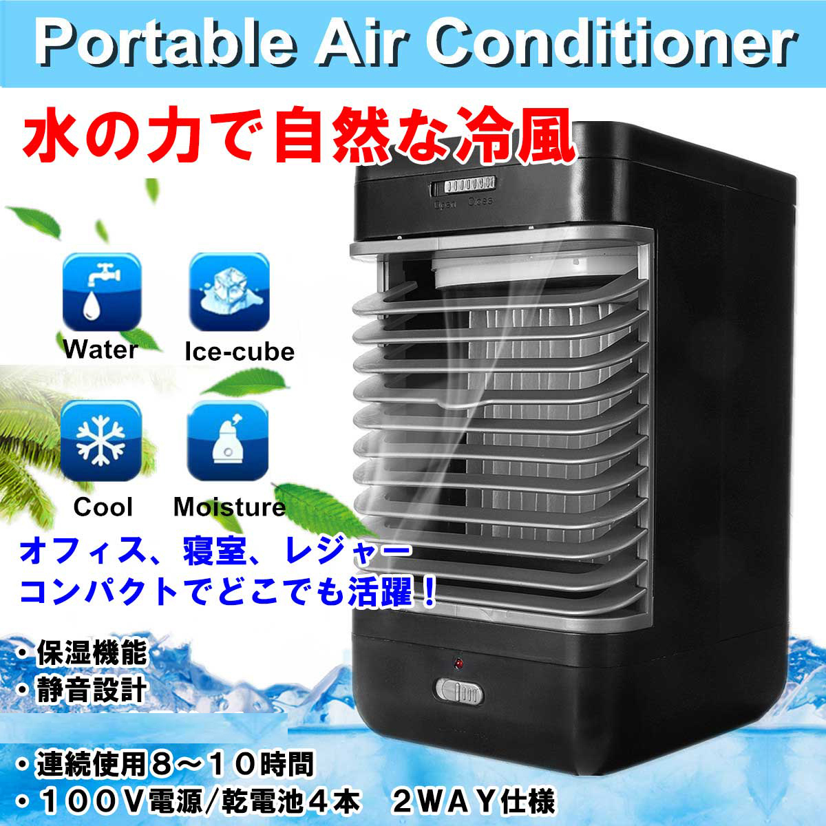 - ■ウォータークールファン 冷風扇 扇風機 卓上 冷風機 加湿機能 冷却機能 小型 携帯可 100v電源 乾電池4本