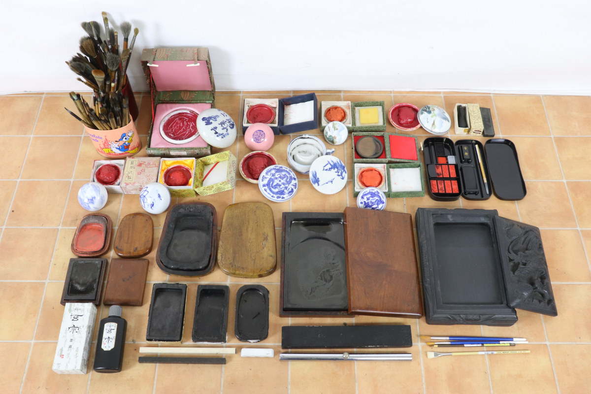 - ★書道具 まとめ 硯 墨汁 墨 和筆 毛筆 面相筆 朱肉 文鎮 書初め 書道 習字 _0JT_C0922-J002