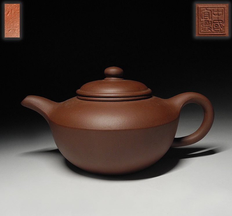 > 緑屋i■ 中国古玩 中国宜興 大振り 朱泥 紫泥 急須 在銘 紫砂壺 宜興紫砂 唐物 時代物 i9/1001-4/30-6#80