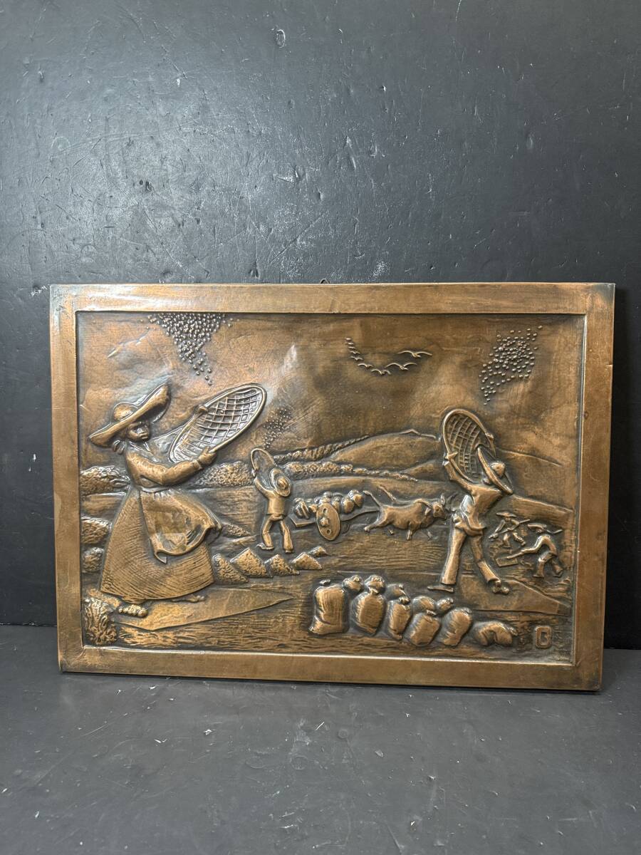 - ★コレクター必見 ビンテージ 銅板 打ち出し 絵画 レリーフ 立体アート 金属工芸 額装 飾り コレクション GT561