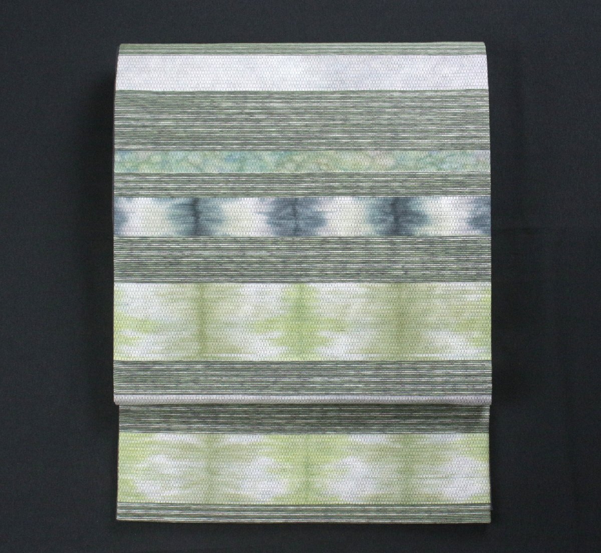 > *美品* 正絹洒落帯 和モダン 横段文様 e-2561