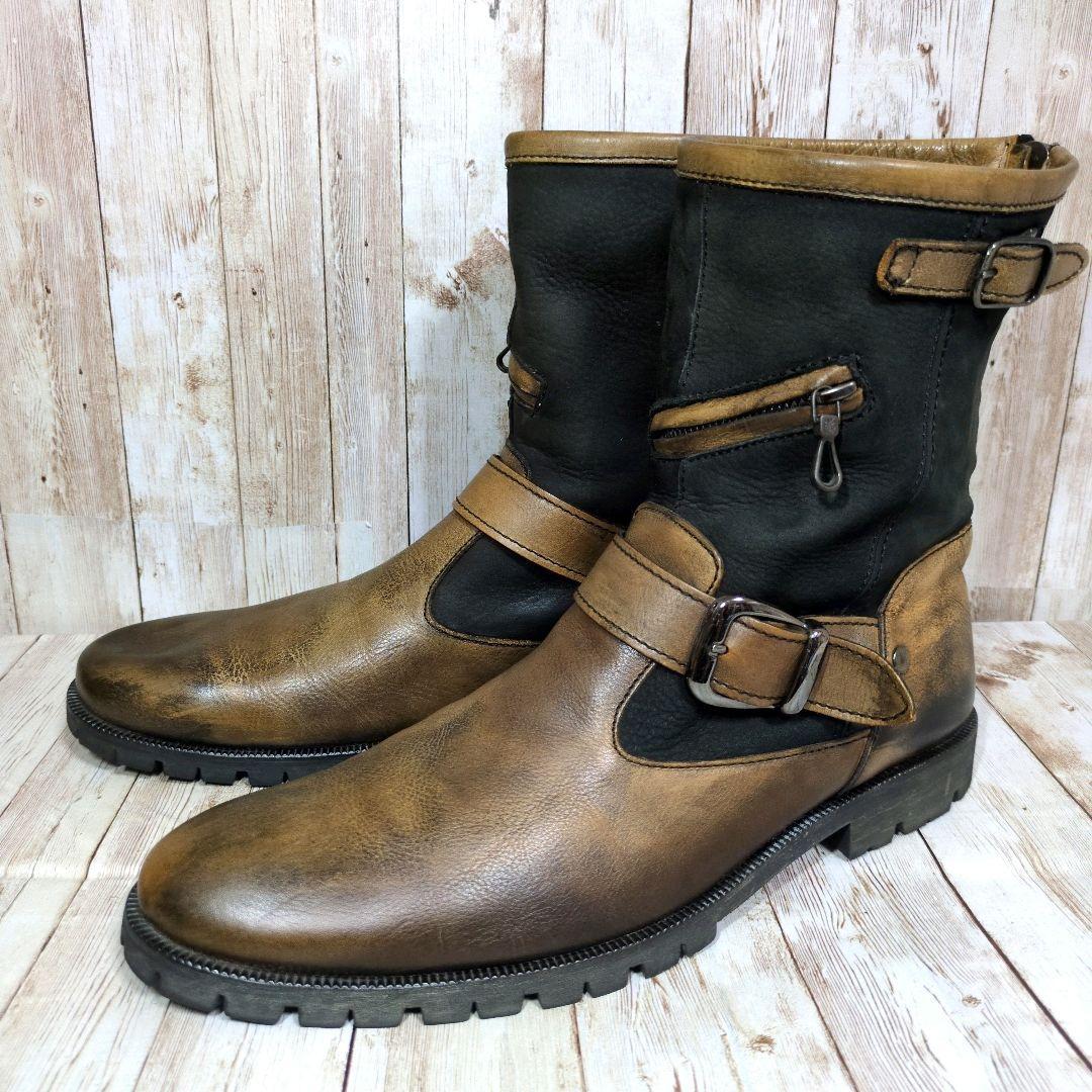 - 【SCHLUSSEL】シュリセル☆エンジニアブーツ☆切替☆サイドジップ☆センタージップ☆ベルト付☆ブラック×ブラウン☆カーキ☆74☆26cm相当