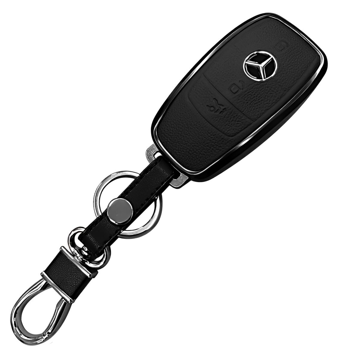 > 新品即決 メルセデスベンツ アルミ 黒本革 レザー キーケース キーカバー CLA CLS EQC GLB GLC GLE GLS Aクラス Bクラス Cクラス Eクラス