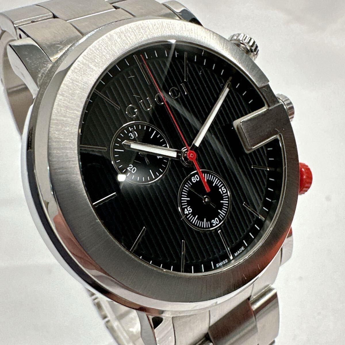 > 美品!動作確認済 稼働 GUCCI グッチ 腕時計 メンズウォッチ 101M Gクロノ QZ クォーツ SS ブラック文字盤 箱付【1249】