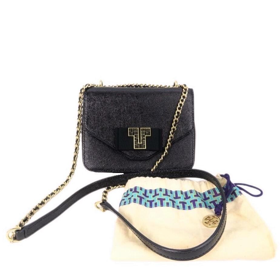 - 本物 未使用■トリーバーチ■T リボン ブラック PVC レザー ゴールド 斜めがけショルダーバッグ