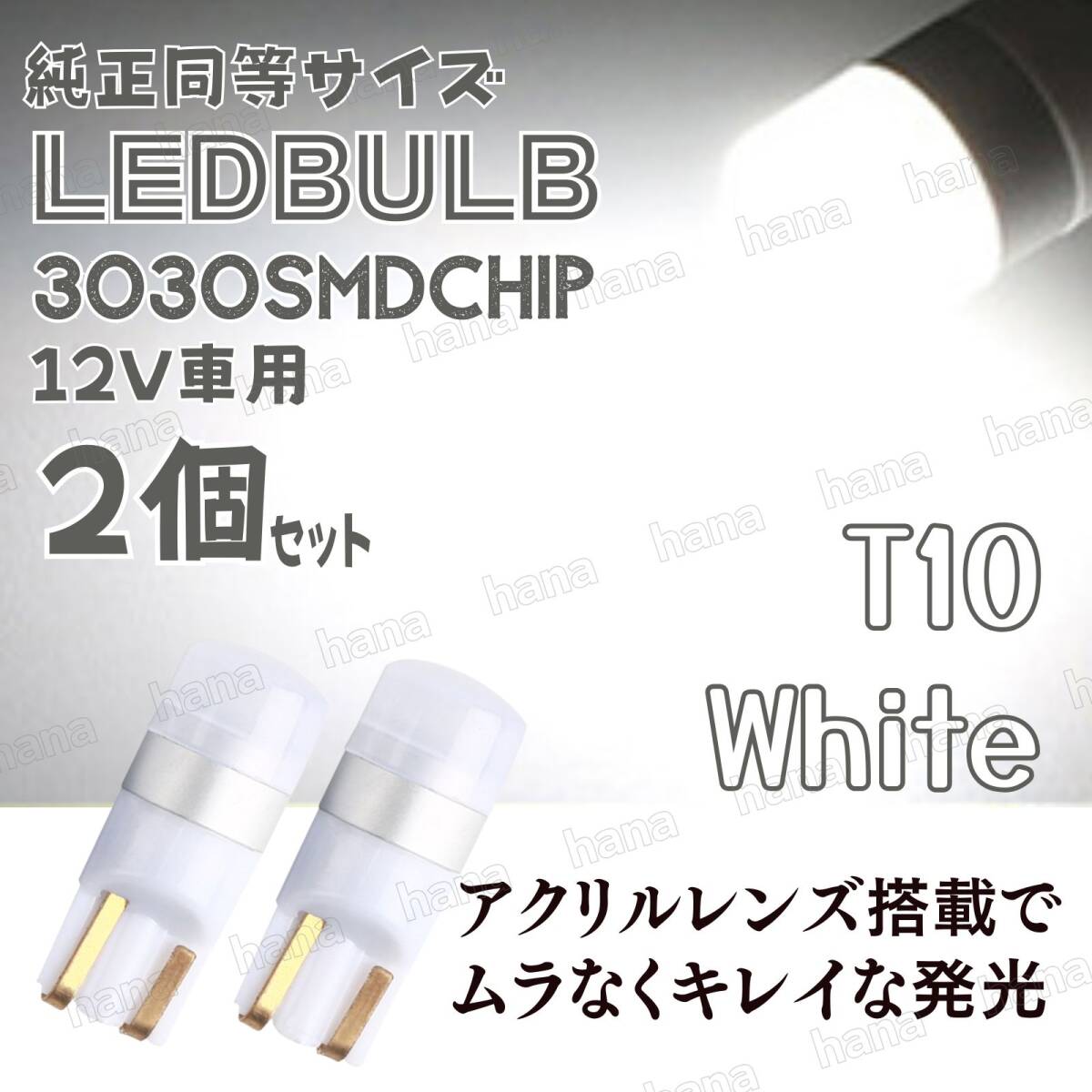 - LED ホワイト バルブ 拡散レンズ T10 T16 汎用 3030SMD 12V ウェッジ球 2個 ポジションランプ ルームランプ ナンバー灯