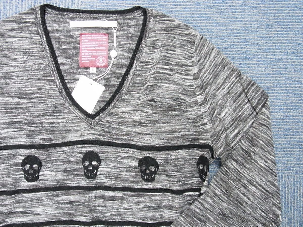 > ★正規★MARK&LONA マーク&ロナ★スカルボーダーVネックニット★S【ML-11S-V01A】グレー灰ブラック黒【本物保証】店頭完売★カタログ掲載