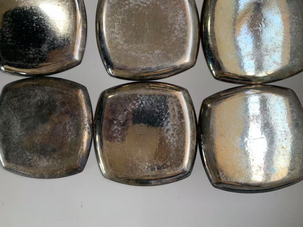 - G1-6-5→アズマ Azuma 銀メッキ 銘々皿×9枚セット 打ち出 茶道具 中古