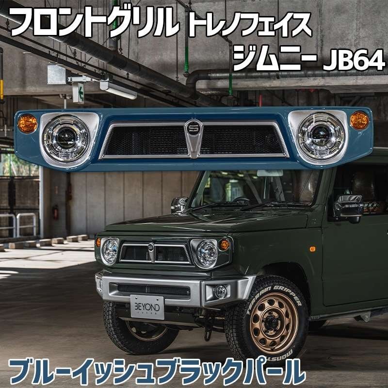 - フロントグリル ジムニー JB64 BEYOND ブルーイッシュブラックパール 塗装済 CODE09塗 トレノフェイス ブラックエンブレム