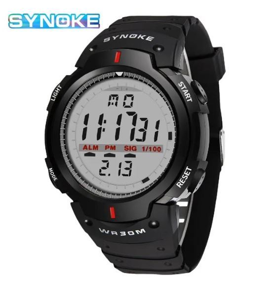 - 送料無料 未使用品 カスタムカラー SYNOKE デジタルウォッチ メンズ腕時計 ブラック (ワンポイントカラー レッド)