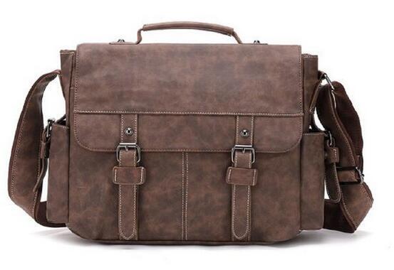 - 本革 男性用バッグ大容量14インチノートパソコンバッグ男性用ショルダー斜め掛け横タイプ