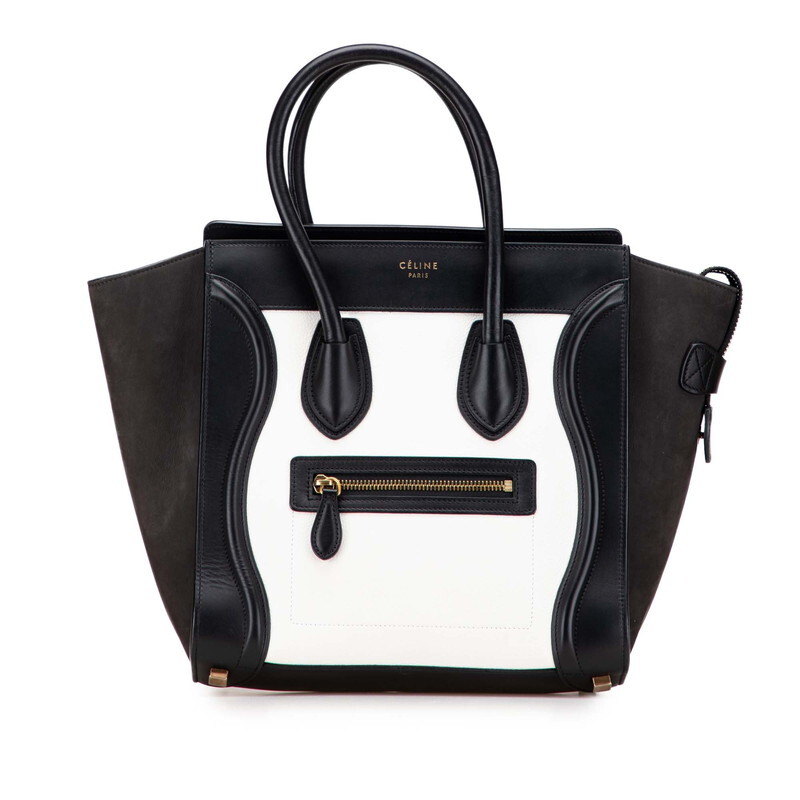 > セリーヌ ラゲージ マイクロショッパー ハンドバッグ トートバッグ ブラック ホワイト レザー スウェード レディース CELINE 【中古】