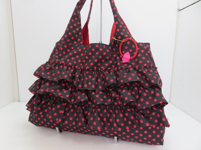 - 【中古品】 TUNIC チュニック フリルトートバッグ ドット柄 ブラック×レッド 〇YR-10418〇