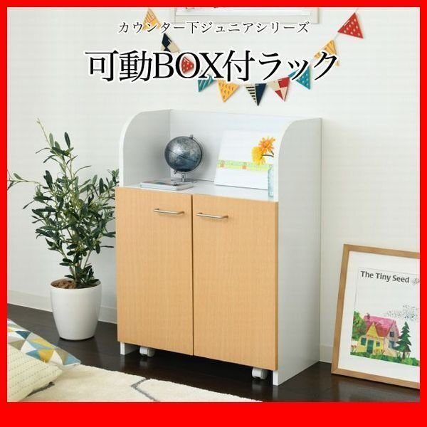 > 子供収納★カウンター下収納 可動BOX付きラック/ランドセルラック おもちゃ箱 お子様の整理整頓 習慣/ホワイト ナチュラル/zz