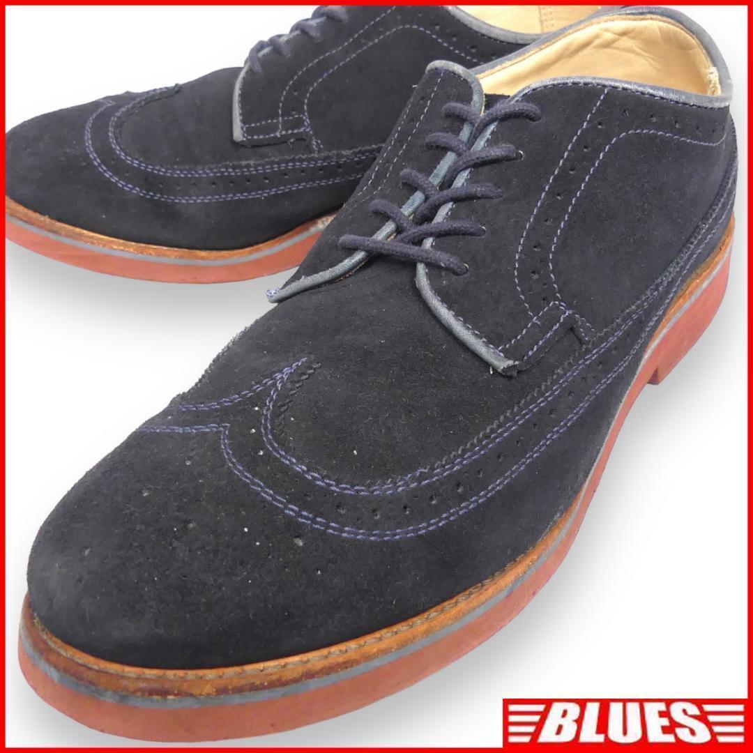 > 即決★アメリカ製 WALK OVER★26cm レザーレースアップシューズ メンズ 8 紺 ネイビー 本革 スエード 本皮 USA 革靴