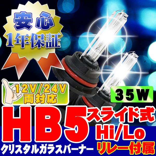 > HIDバーナー 35W HB5 Hi/Loスライド式 10000K リレー付 12V/24V 交換用左右セット UVカット加工 石英ガラス ヘッドライト