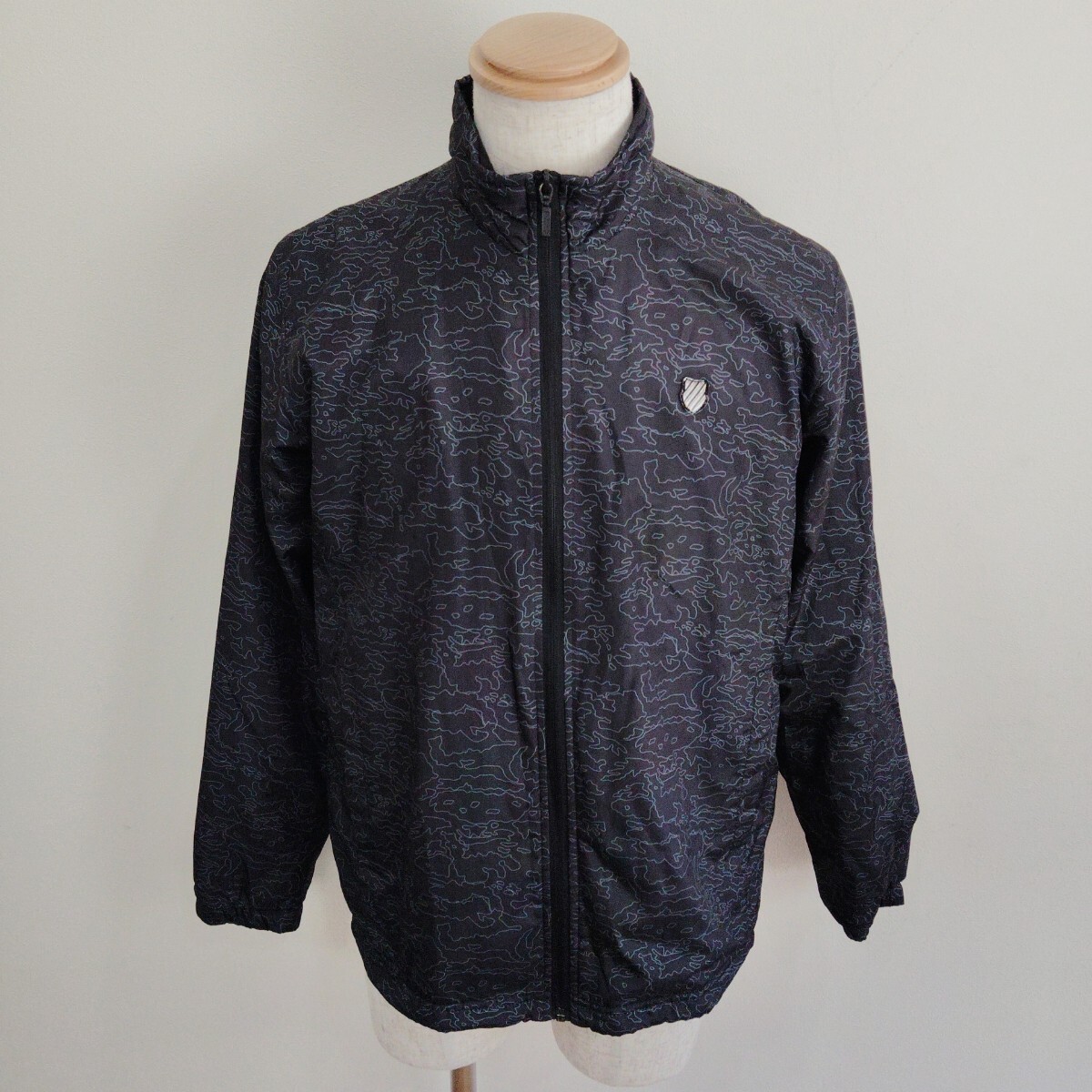 - 1003/M/KSWISS メンズ ジップアップブルゾン ナイロンジャケット 総柄 黒