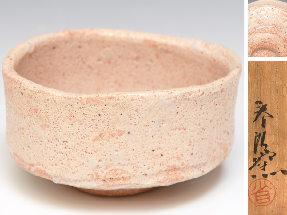 - 谷川春陽 (造) 志野茶碗 共箱 茶道具 陶磁器 美濃 u1142a