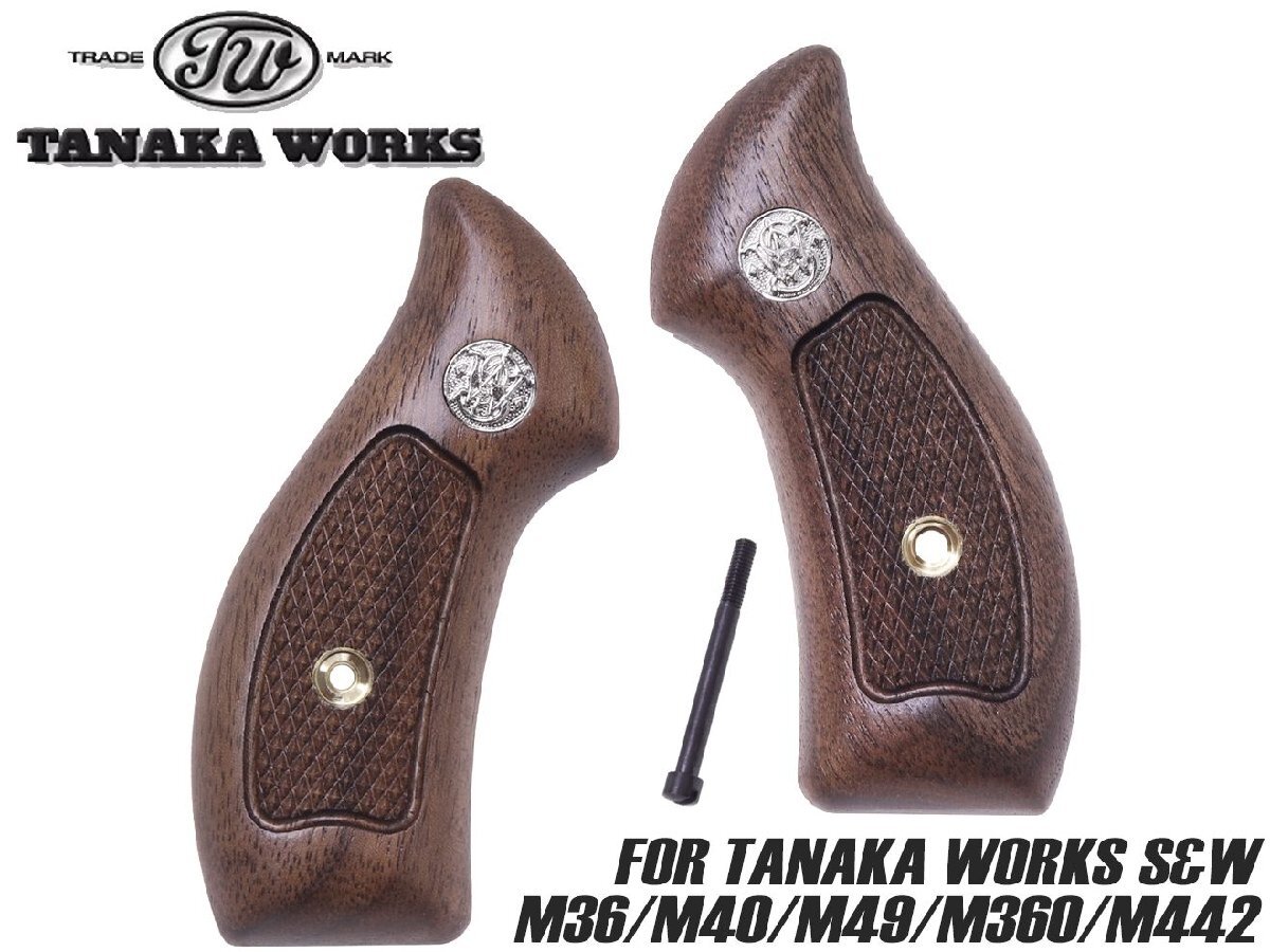 - TNK-SW-ACC003 タナカワークス 木製グリップ +Weight SW Jフレーム ラウンドバット(ウォールナット チェッカー)
