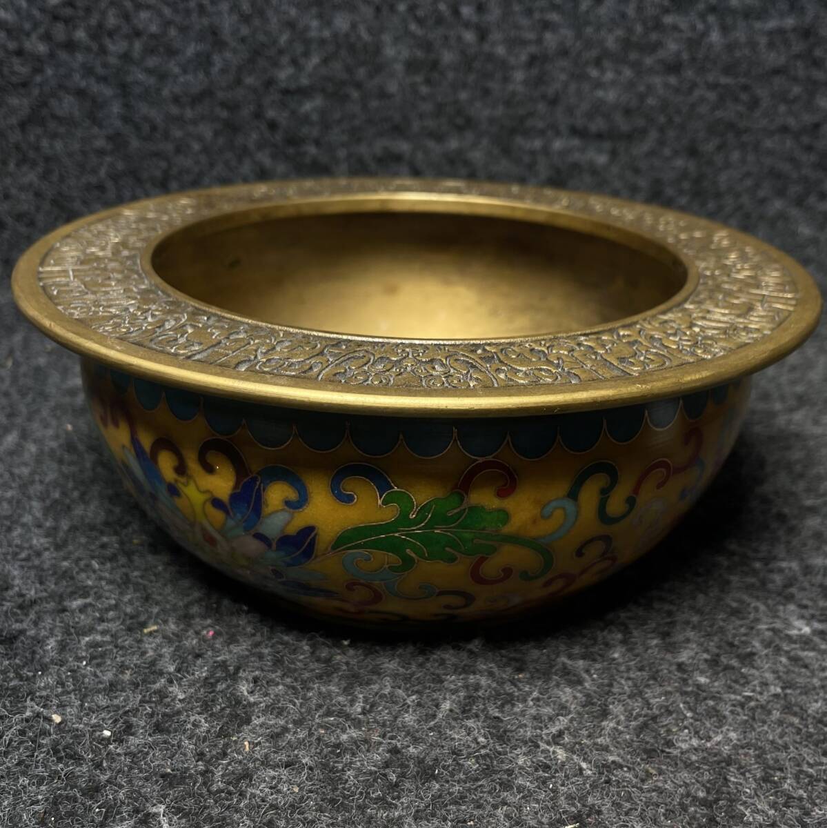 > 【超珍館蔵】 塗金 景泰藍 琺瑯彩 纏枝花卉紋 聚寶盆 置物 賞物 古賞物 古董品 古美術品 時代物 旧家蔵出 稀少珍蔵品