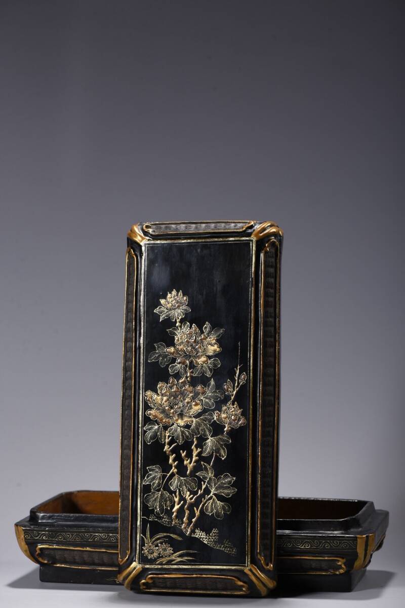 - 蔵友旧蔵出 木胎漆器彫 描真金 玉堂富貴図 首飾盒 供養品 置物擺件 古賞物 中国古玩 中国古美術品